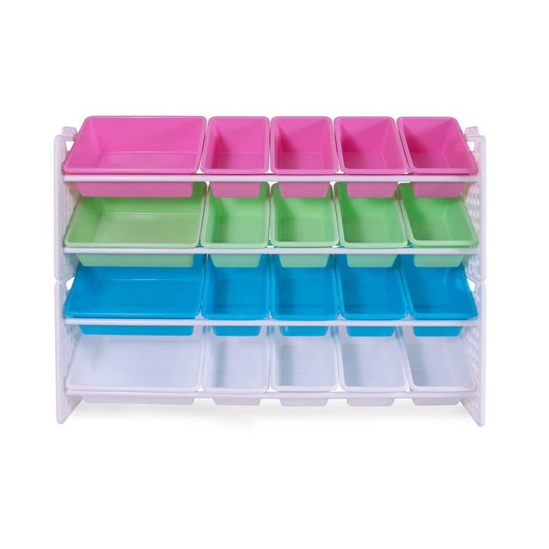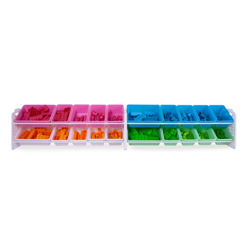 UNiPLAY Toy Organizer with 20 Removable Storage Bins, Multi-Bin Organizer for Books, Building Blocks, School Materials, Toys with Baseplate Board Frame (Pink)