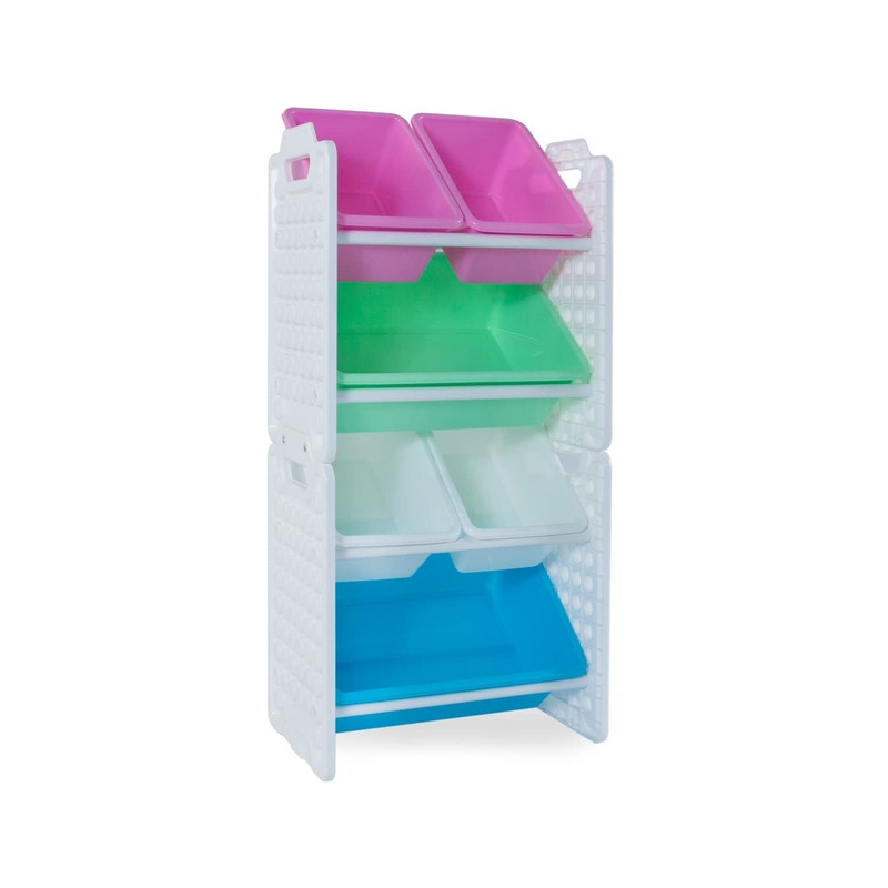 UNiPLAY Toy Organizer with 6 Removable Storage Bins, Multi-Bin Organizer for Books, Building Blocks, School Materials, Toys with Baseplate Board Frame (Pink)