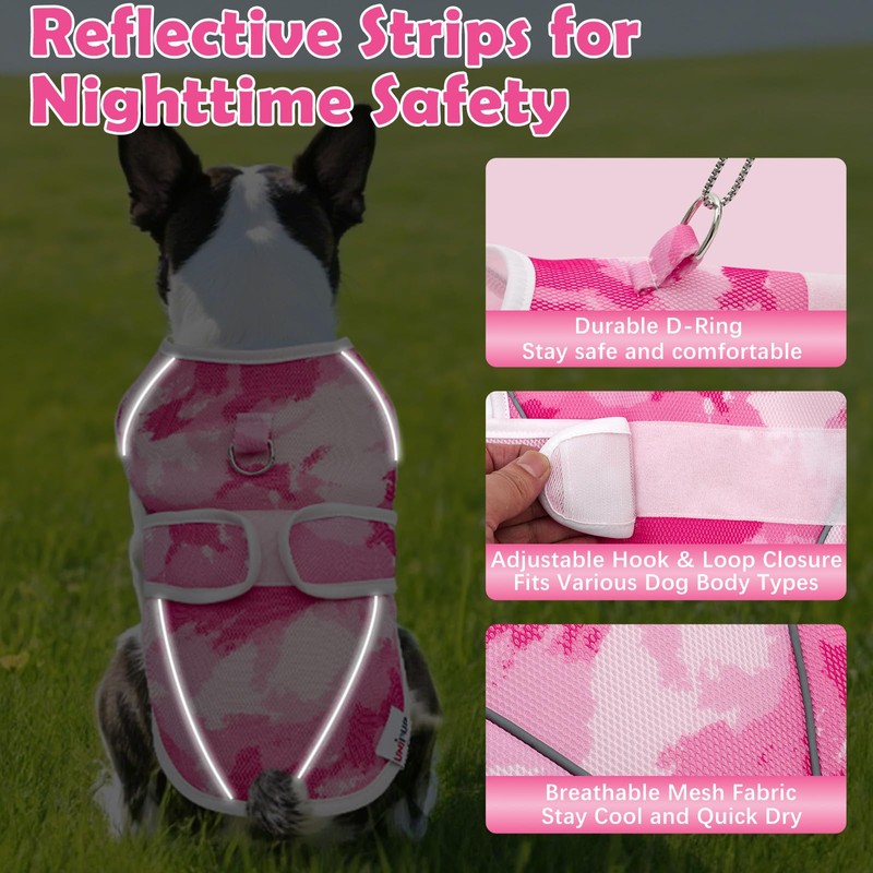 UNIPUP Dog Cooling Vest – Lightweight Pet Cooling Shirt 3D Breathable Mesh, Reflective Strips & UV Protection for Walking, Hiking, Park – Adjustable Fit Dog Cooler Jacket with D-Ring U-DCV01M