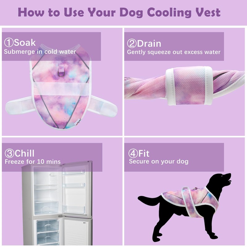 - QUICK & EASY TO USE - Simply soak the Dog Cooling Shirt in water for 2-3 minutes, gently wring out excess water, and put it on your dog. For enhanced cooling effect, refrigerate the damp vest for 10 minutes before use.