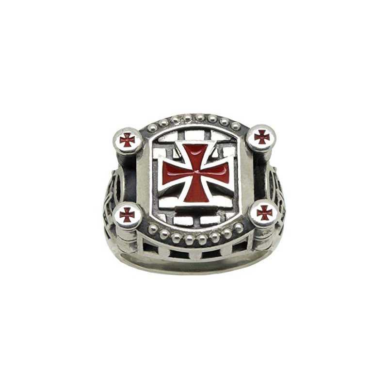 UNIQABLE Handmade Knight Templar Masonic Cross Ring Shield & Sword 925 Sterling Silver Red Enamel KTR024 (12.5)