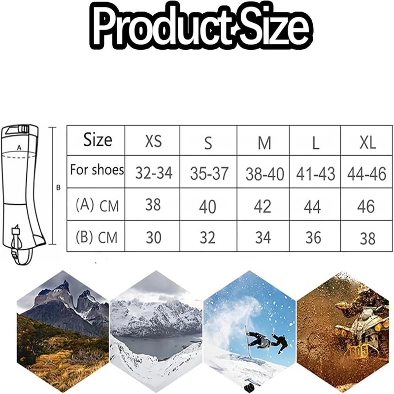 - 【Thoughtful upgrade design】Our enhanced waterproof zipper leg gaiter not only ensures cleanliness but also enhances longevity. The strengthened eco-friendly TPU instep straps offer exceptional resistance against abrasions and remain unbreakable even on ice and rocks, easily adjusting to fit your shoe sole. No more worrying about your leg gaiters slip off during walking. An adjustable drawstring closure is designed at the top of the leg gaiters to ensure a perfect fit without slipping.
