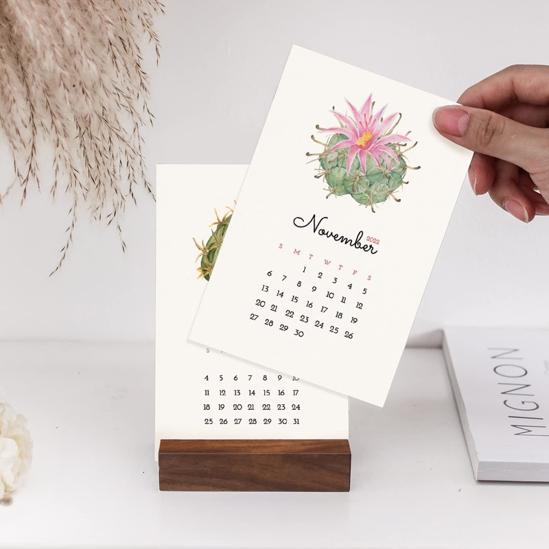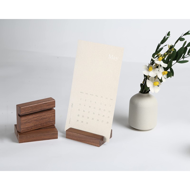 - Beautiful Stand for Desk Calendar: Made of high quality solid walnut wood, this wood stand adds an elegant touch to your monthly desk calendar. It holds up to 13 cardstocks and is easy to switch the pages each month.