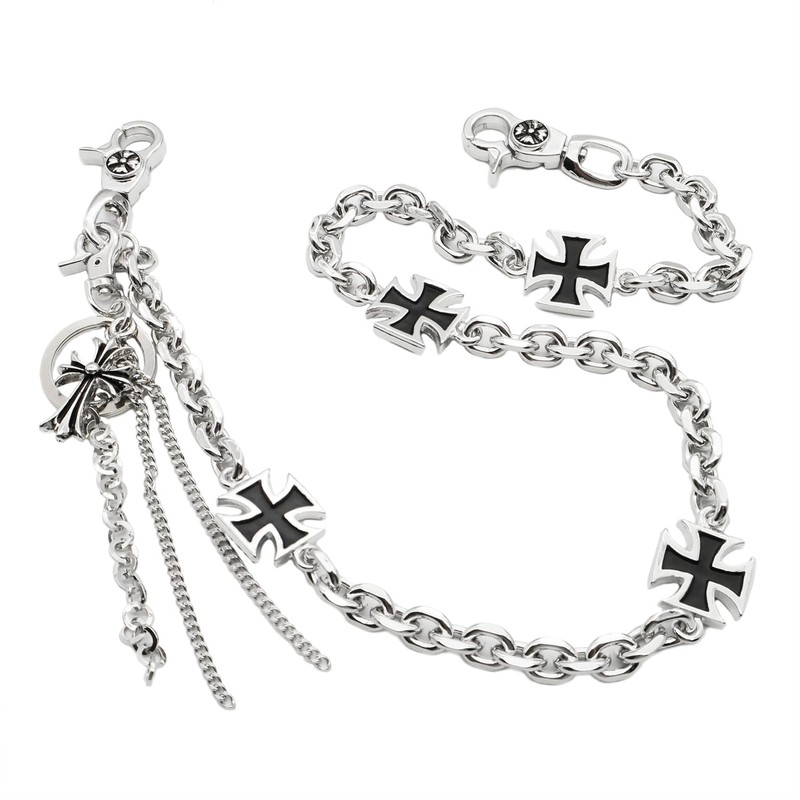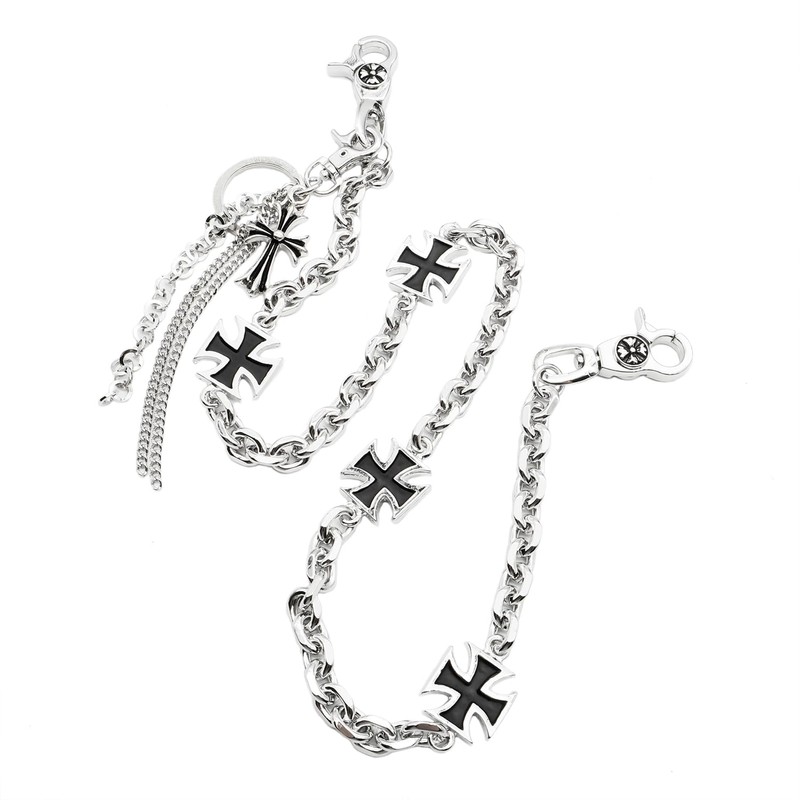 UNIQSUM Maltese Cross Charm wallet chain Biker Punk Key chain With Detachable Keyring (HX Silver)