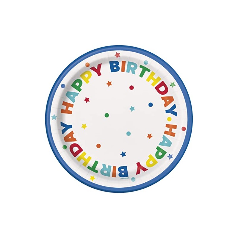- Pack of 8 Dots & Stars Birthday Party Plates