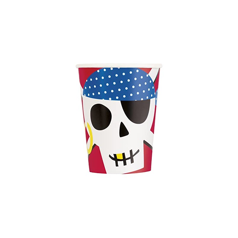 Unique 82210 Paper Cups-266 ml-Ahoy Pirate Party-8 Count (Pack of 1), Multicolour