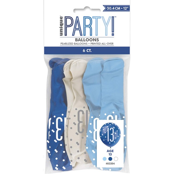 Unique 83394 Polka Dots 13th Birthday Latex Balloons, 12" | Assorted | 6 Pcs, Blue, Age 13