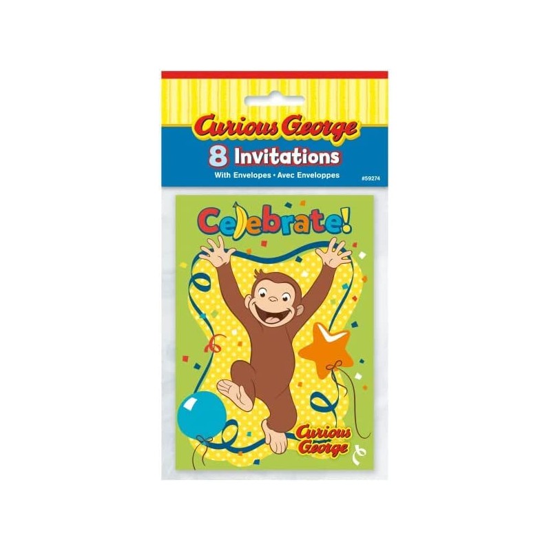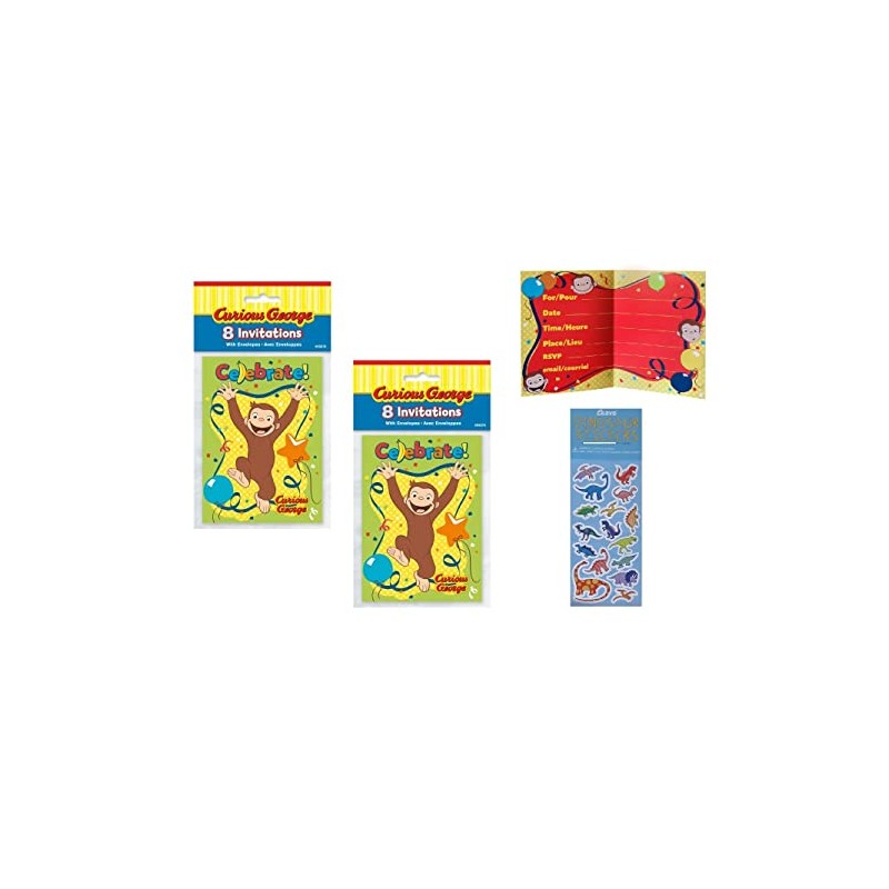 Unique Curious George Birthday Party Supplies Bundle Pack includes Party Invitations with Envelopes - 16 Count