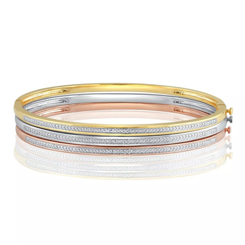 Unique Design Valentine Gift Diamond Accent 3 Piece Stackable Fashion Bangle Set For Womens