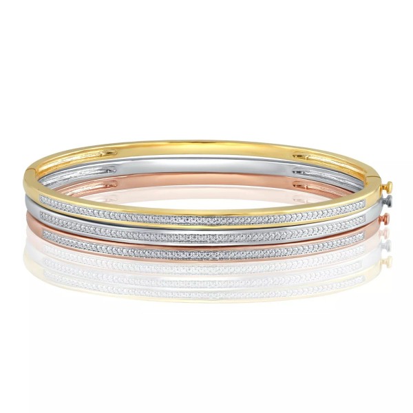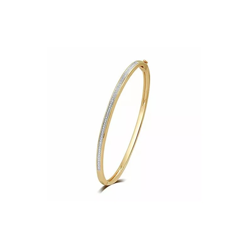 Clearance : 18K Gold Plated Diamond Accent Stackable Bangle Set by Unique Designs Under 1/10 CT TDW White Diamond Brass I2-I3 I-J Good Cut Round