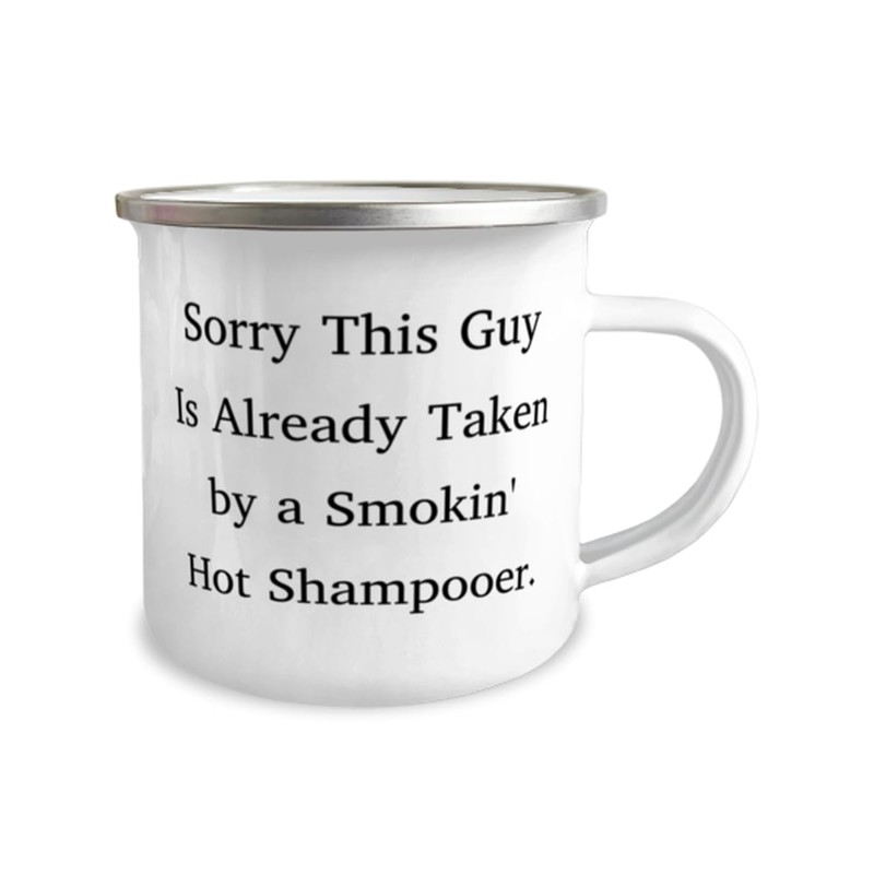 Unique Idea Shampooer Gifts, Sorry This Guy Is Already Taken by', Birthday Unique Gifts, 12oz Camper Mug For Shampooer from Boss, Inexpensive shampooer gifts, Budget shampooer gifts, Cheap shampooer