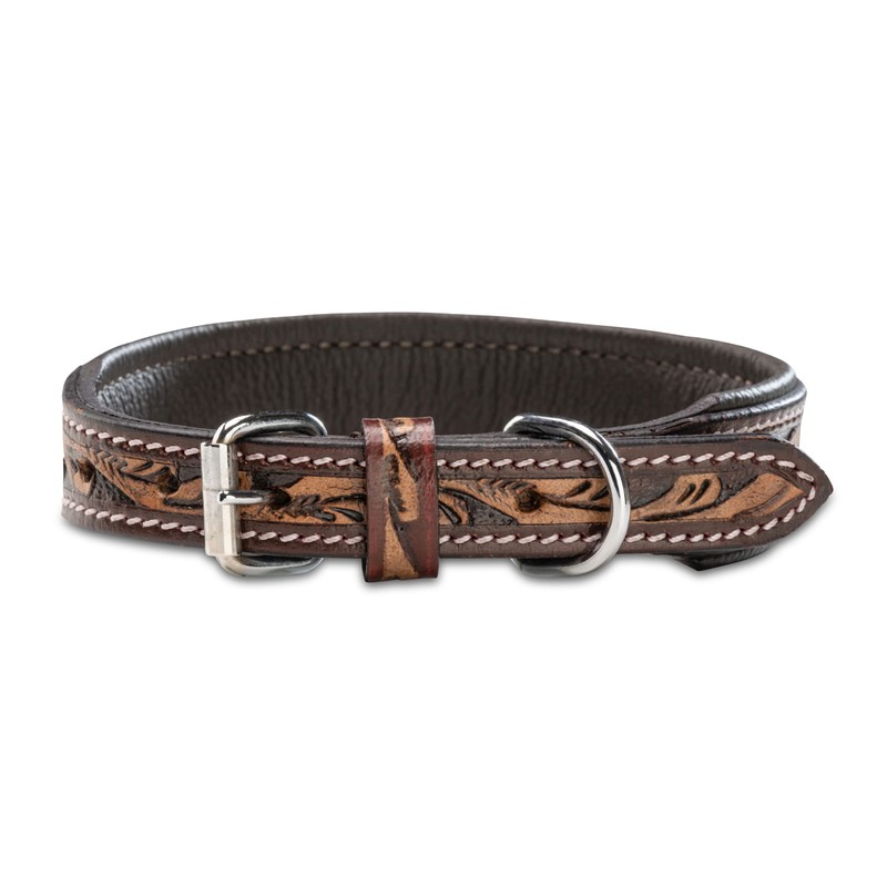 Unique Leather Dog Collar with Hand-Carved Stamping Patterns / Ornaments - Buffalo Leather Collar - Padded Dog Leather Collar Alexey (L (40.0-49.5 cm)