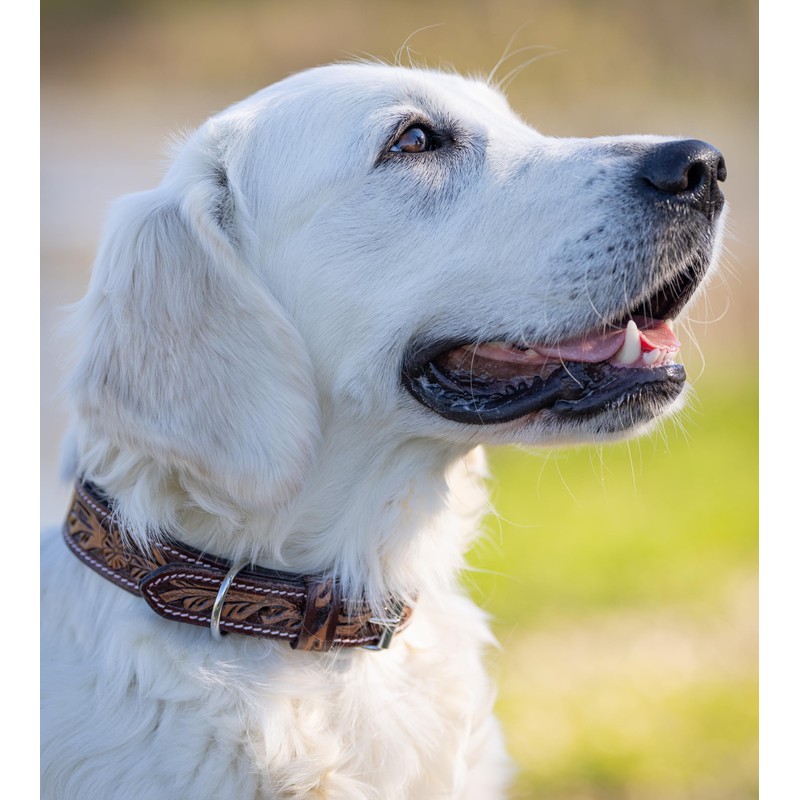 Unique Leather Dog Collar with Hand-Carved Stamping Patterns / Ornaments - Bu...