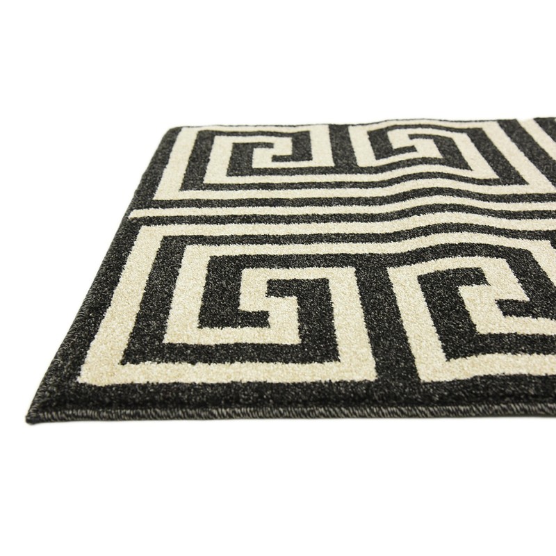 Made in Turkey, this Unique Loom Athens Collection rug is made of Polypropylene. This rug is easy-to-clean, stain resistant, and does not shed. Colors found in this rug include: Black, Beige. The primary color is Black. This rug is 1/2" thick. The measurements for this rug are: 2 feet 7 inches wide by 10 feet long. Features an allover pattern.