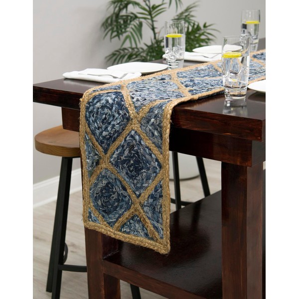 Unique Loom Braided Jute Collection Area Rug - Bengal (1' 2" x 5' 1" Table Runner Blue/Natural)