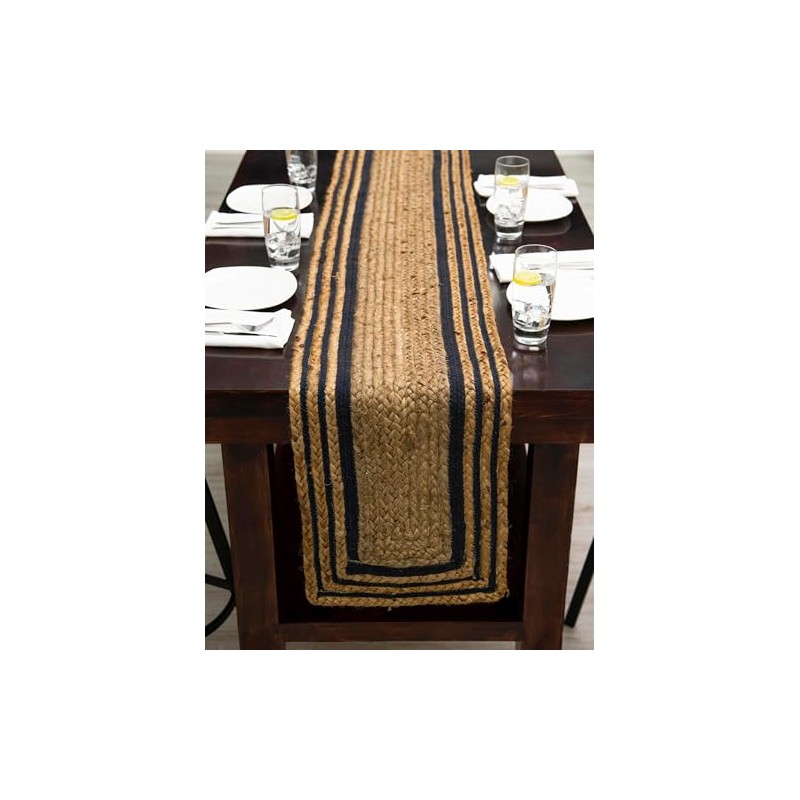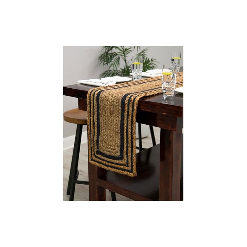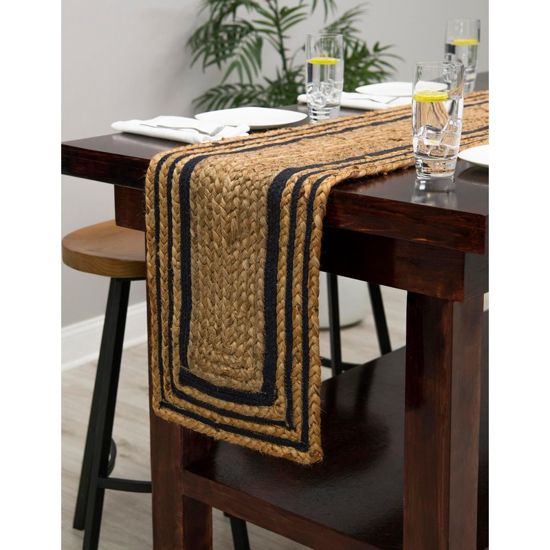 Unique Loom Braided Jute Collection Area Rug - Gujarat (1' 2" x 8' Table Runner Natural and Navy Blue/Navy Blue)