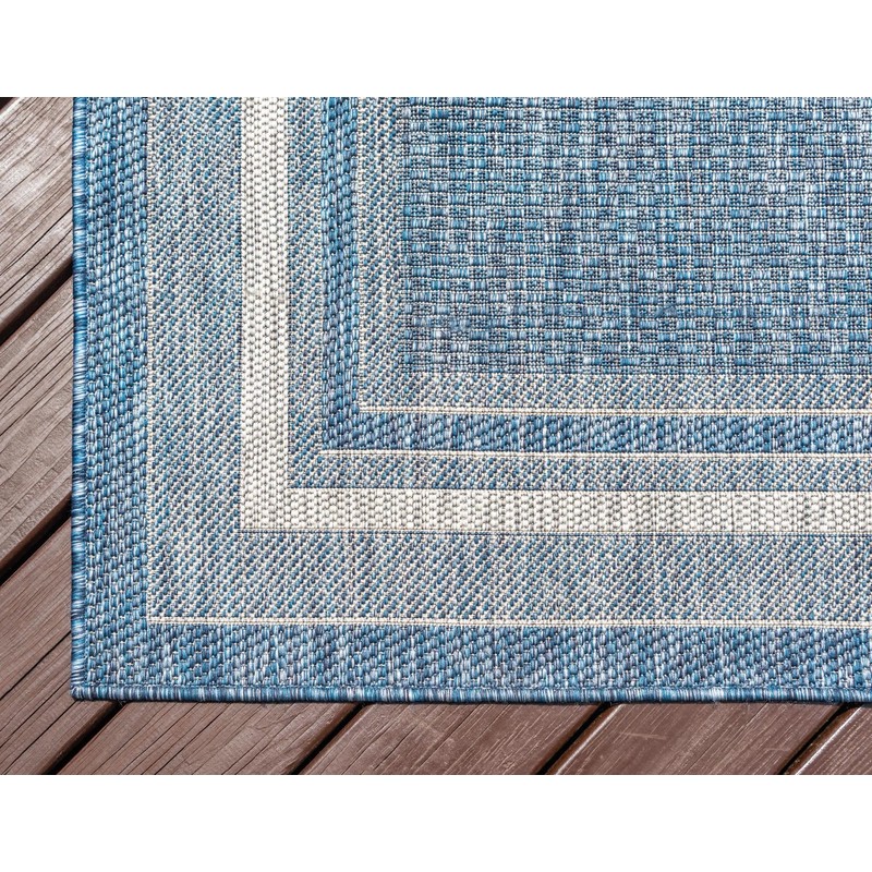 Unique Loom Outdoor Border Collection Area Rug - Soft Border (6' 1" x 9' Rectangle, Blue/ Ivory)