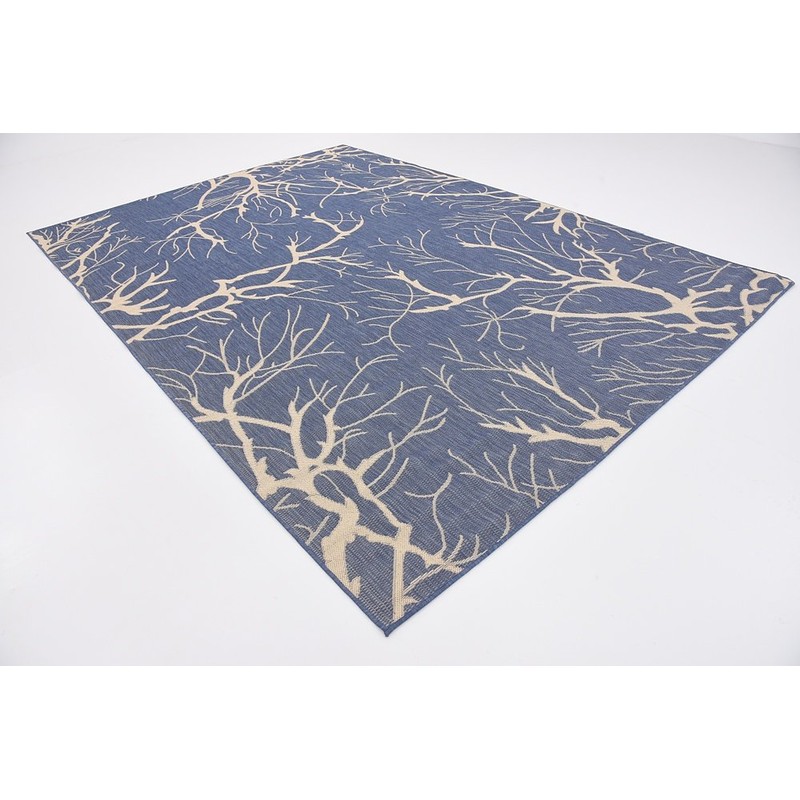 Unique Loom Outdoor Botanical Collection Abstract Pictorial Transitional Indoor and Outdoor Flatweave Blue Area Rug (8' 0 x 11' 4)