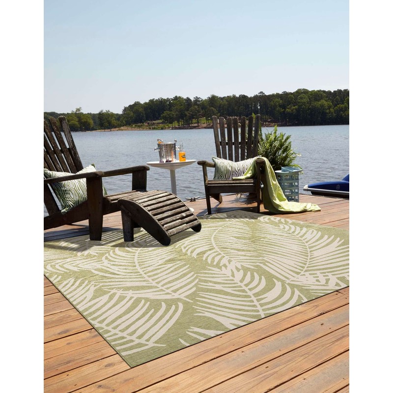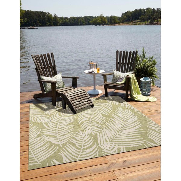 Unique Loom Outdoor Botanical Collection Area Rug - Palm (7' 10" Square Green/Ivory)