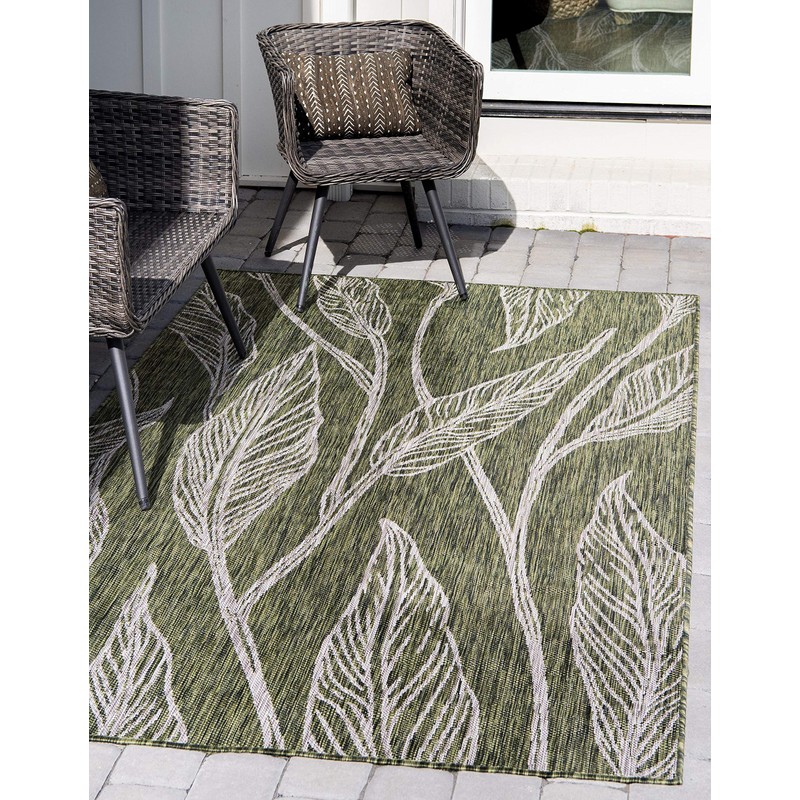 Unique Loom Outdoor Botanical Collection Casual Leafs Transitional Indoor and Outdoor Flatweave Green Area Rug (5' 0 x 8' 0)