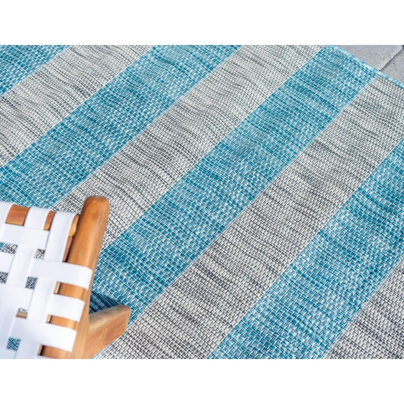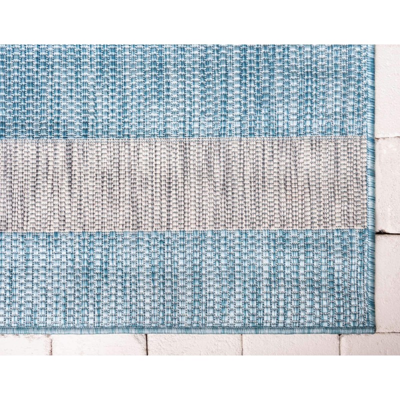 Unique Loom Outdoor Striped Collection Area Rug - Distressed Stripe (8' x 11' 4" Rectangle, Light Aqua/ Gray)