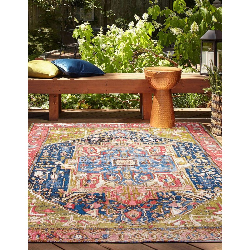 Unique Loom Outdoor Traditional Collection Area Rug - Limon (5' 3" x 8' Rectangle, Multi/ Red)