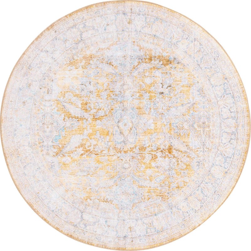 Unique Loom Revival Collection Traditional Medallion Border Yellow/Ivory Round Rug (3' 6 x 3' 6)