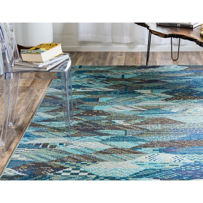Unique Loom Sedona Collection Geometric Southwestern Blue Area Rug (5' 0 x 8' 0)