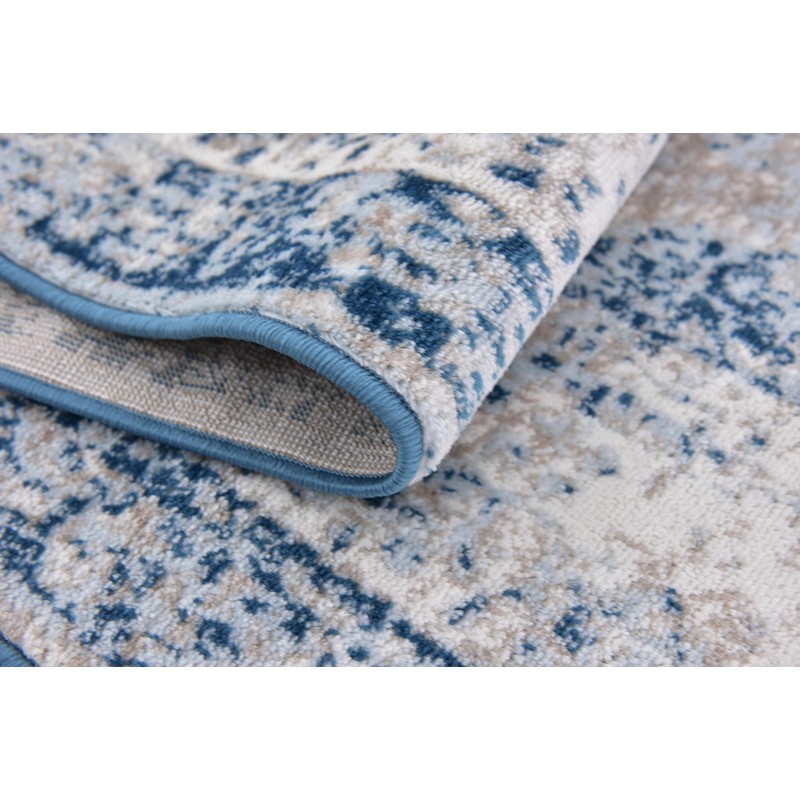 - Size in FT: 6' 0 x 9' 0 - Size in CM: 183 x 274 - Pile Height & Thickness: 1/3" - Colors: Blue, Light Blue, Ivory, Tan