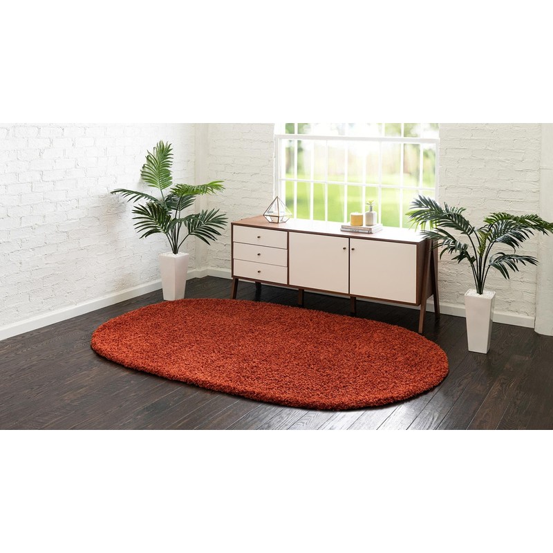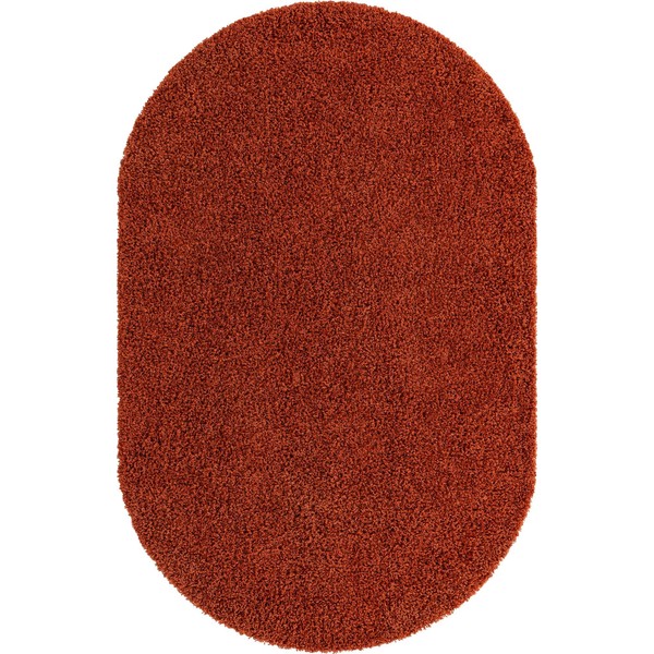 Unique Loom Solid Shag Collection Area Rug (5' 1" x 8' Oval, Terracotta)