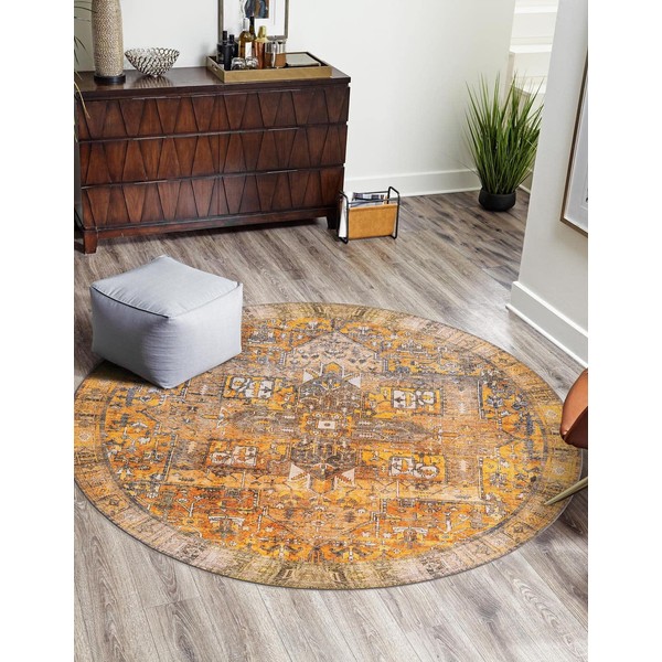 Unique Loom Timeless Collection Area Rug - Peter (7' 6" Round, Yellow/ Black)