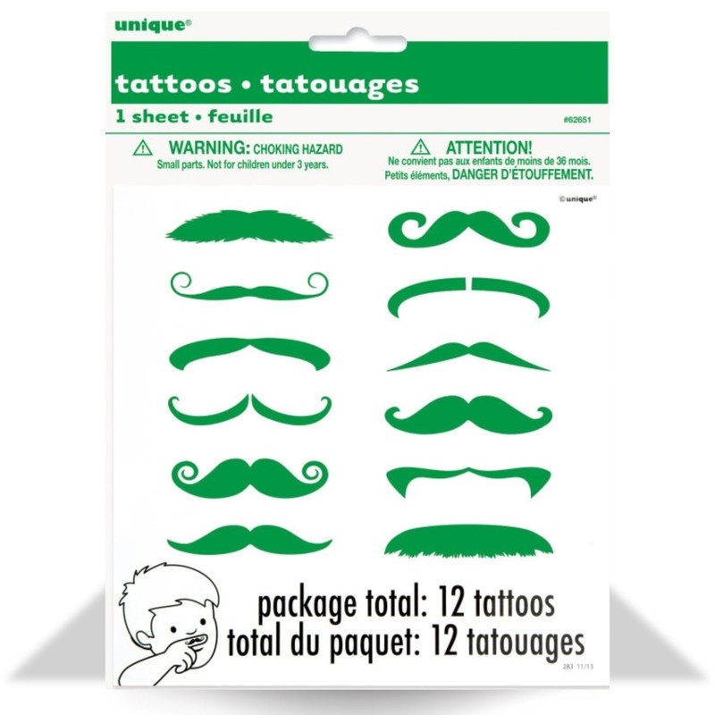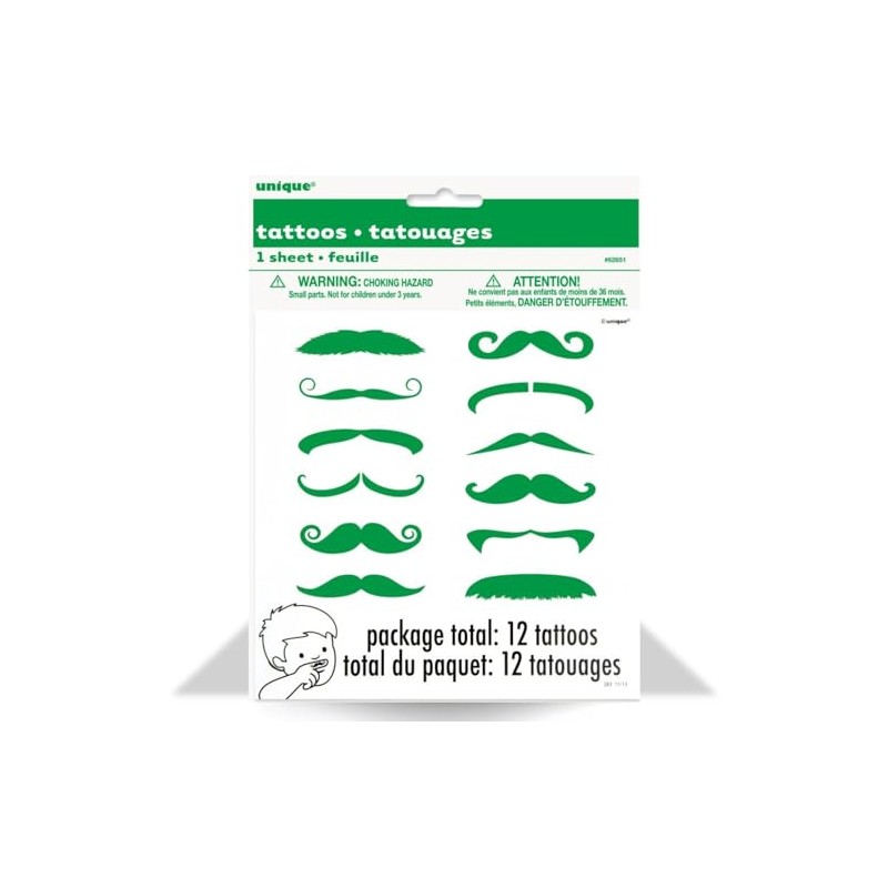 Unique Mustache Finger Tattoos | Green | 12 Pcs, One Size