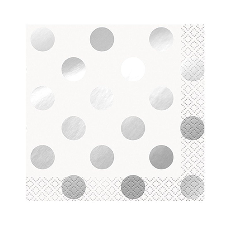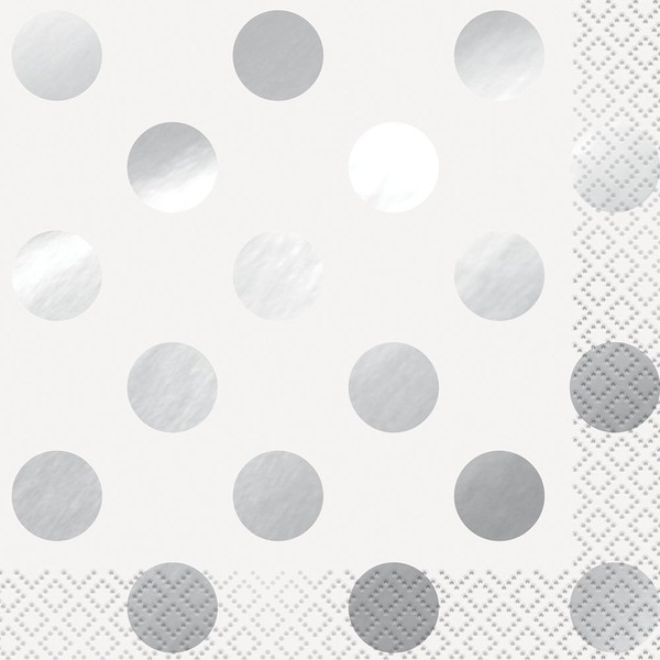 Unique Party 32301 - Foil Silver Polka Dot Cocktail Napkins, Pack of 16