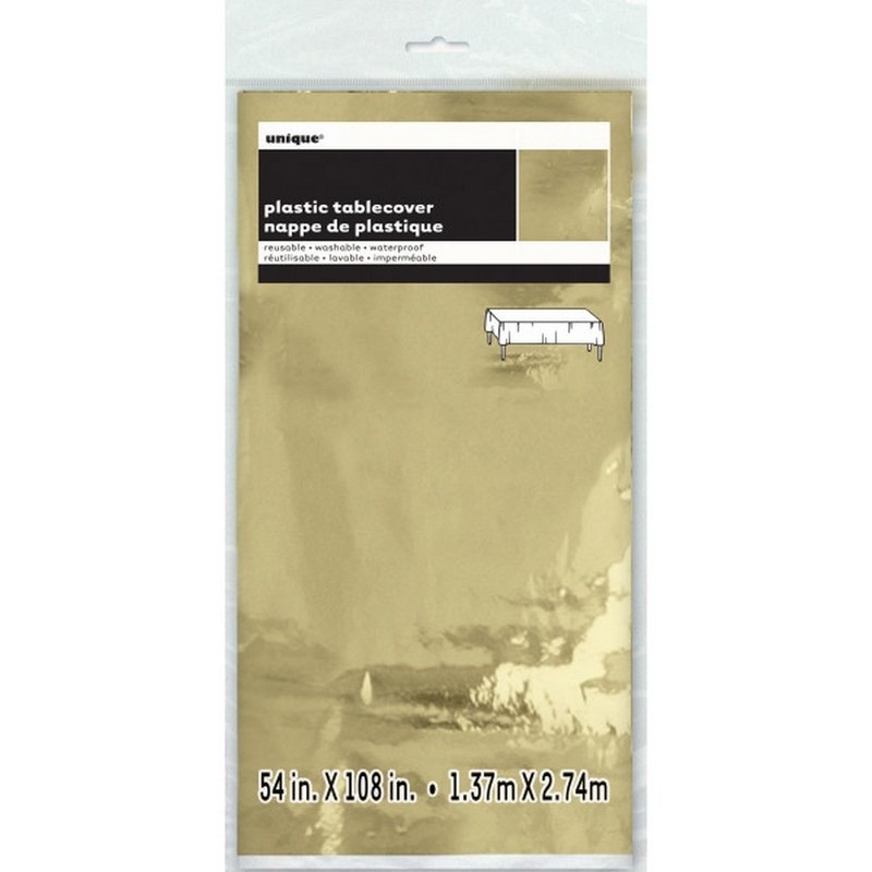 Unique Party 50411 - Foil Gold Plastic Tablecloth, 9ft x 4.5ft