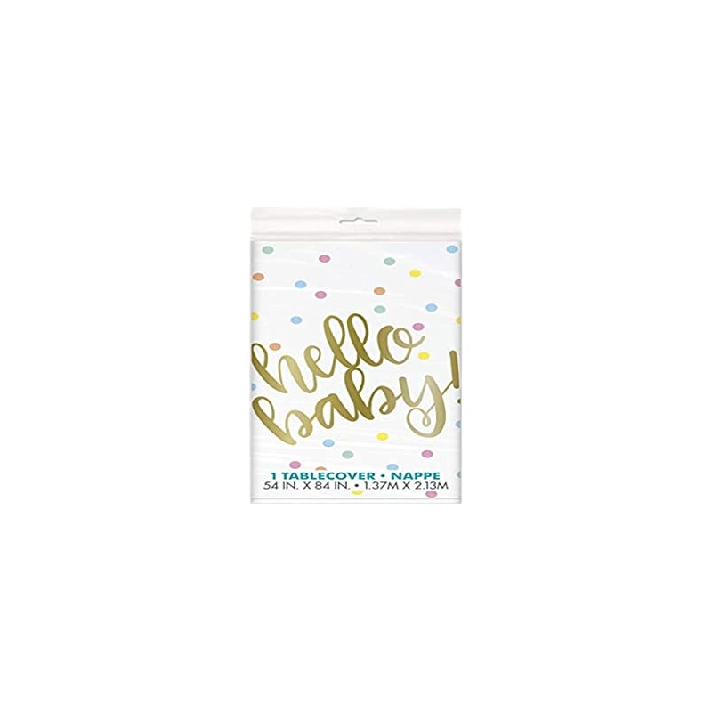 Unique Party 73523 - "Hello Baby" Gold Baby Shower Plastic Tablecloth, 7ft x 4.5ft