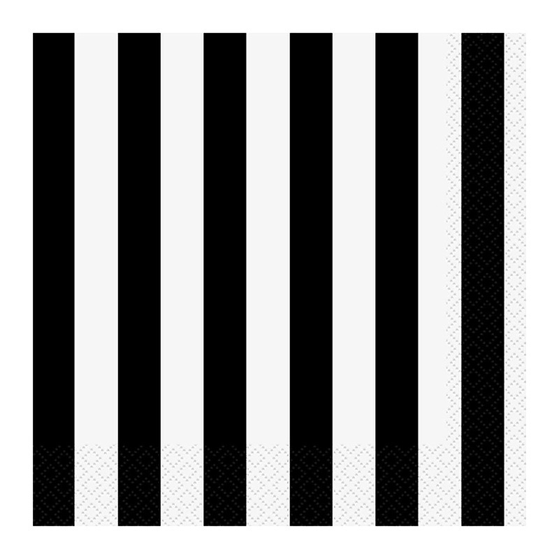 Create a chic table setting with these Black Striped Luncheon Napkins. Featuring black and white stripes, these convenient paper napkins are perfect for wiping up spills or protecting party tables from drink rings and crumbs. For a stylish display of party treats and eats, coordinate with other Black Striped tableware.