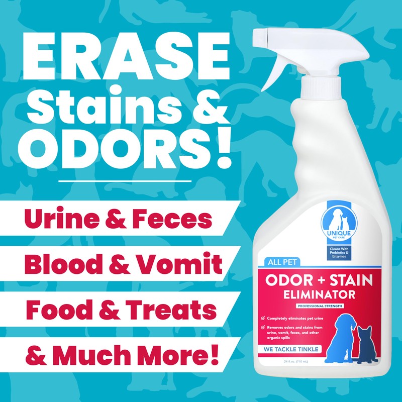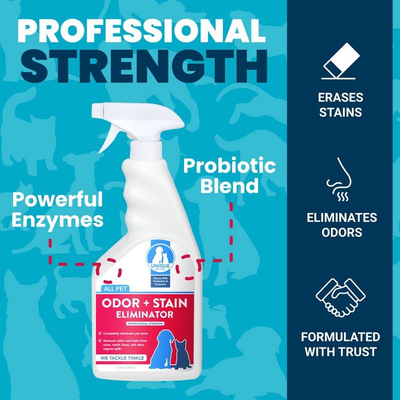 Unique Pet Odor and Stain Eliminator - 24 oz. Ready-to-Use Liquid Spray - Bio-Enzymatic Formula Eliminates Old and New Pet Odor and Pet Stains (Packaging May Vary)