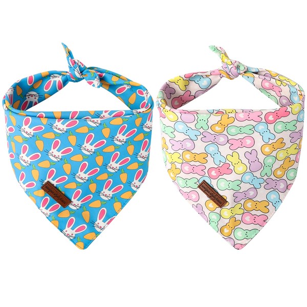 Unique Style Paws Dog Easter Bandanas 2Pcs Washable Cotton Triangle Colorful Rabbit Carrot Dog Scarfs for Small Medium Large Dogs and Cats