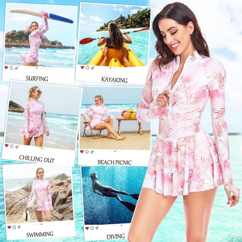 UNIQUEBELLA Rash Guard for Women, 1 Piece Modest Swimsuits for Women - Long S...