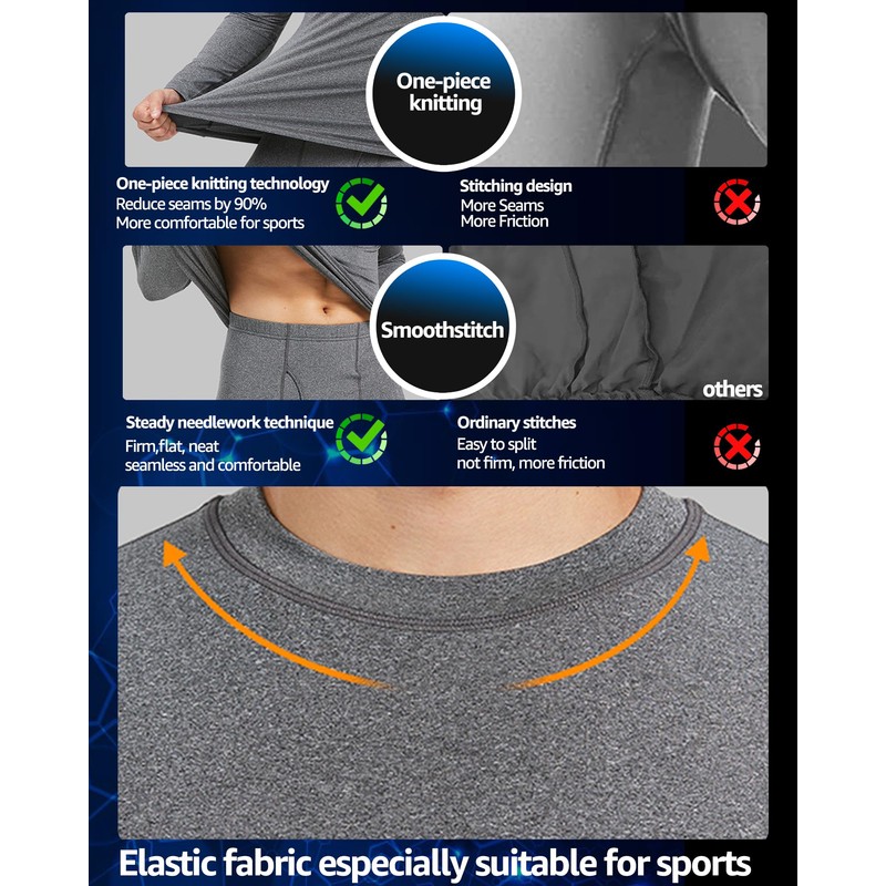 - BREATHABILITY & QUICK DRY - Breathable and moisture wicking fabric is perfect to keep sweat away and dry fast, the mens thermal underwear perfectly repels odors and unpleasant smells left behind from sweat and dirt; With this thermal underwear men, you can happily enjoy outdoor tactical training or sports
