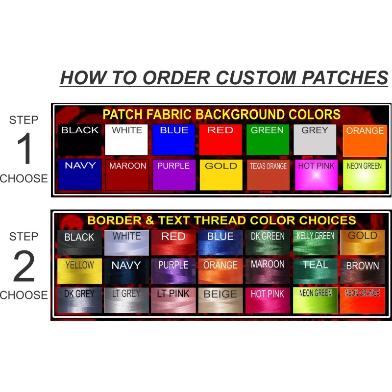 (1) BOTTOM ROCKER PATCH: 15"(W) X 5.5"(H) / 3.375" TEXT BAR SIZE