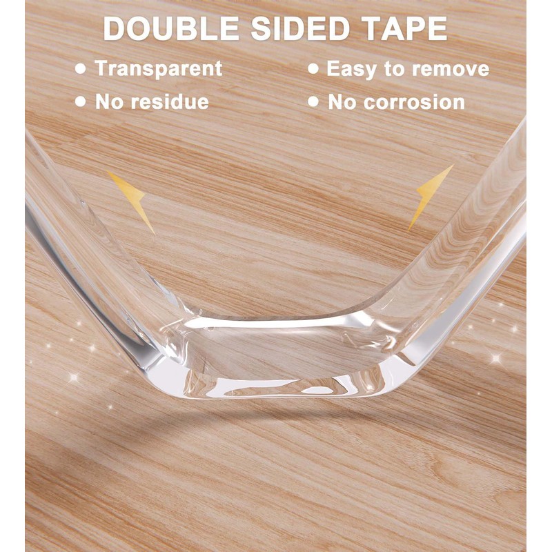 • REMOVABLE CLEAR TAPE: The bubble-free transparent double-sided tape has excellent adhesion and can firmly fix various decorations or items on a flat and smooth surface. You can easily remove this soft and flexible tape without residue. Compared with other liquid glues, our tape will not corrode your furniture and walls, keeping your furniture and items intact and traceless. It is an ideal choice for temporary party decorations and long-term fixing of power strips, lamps, signs, etc.