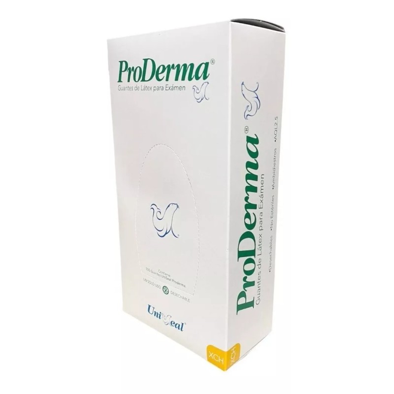 UniSeal Guantes descartables antideslizantes UniSeal ProDerma color natural talle XS de látex con polvo x 100 unidades