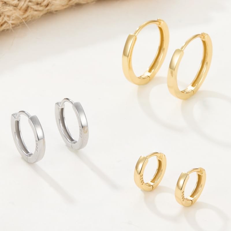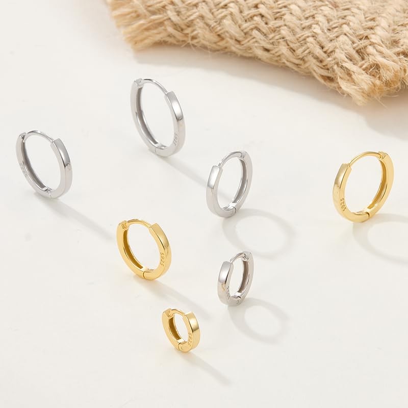 - You are looking at minimalistic huggie hoop earrings. These clickers are made of solid high quality .925 sterling silver (stamped), with Rhodium or18K Yellow Gold filled finished. They are high polished and light weight designed for everyday wear. They could be worn alone or mix and match. Hypoallergenic and waterproof!