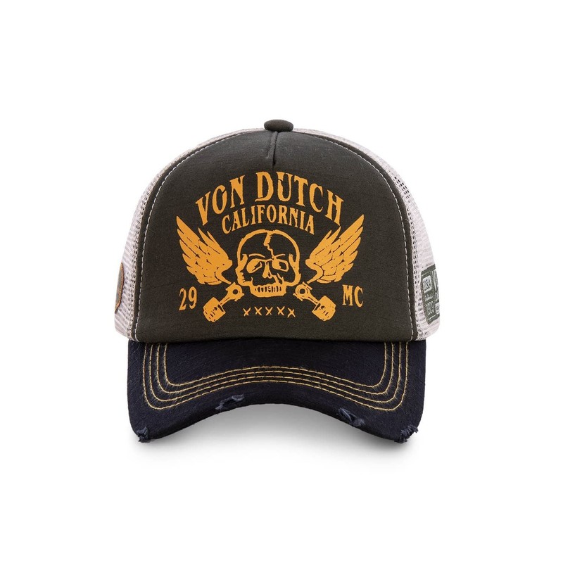 Discover a unique collection of caps from Von Dutch. A rounded and short trucker visor with motorcycle print on the front for a distinctive style. With mesh on the back for added comfort. Discover the precious world of Kenneth Howard, the founder of the brand and the world renowned for personalizing cars. Von Dutch is the vintage outdoor artist, casual style that has multiplied this great man's collections.