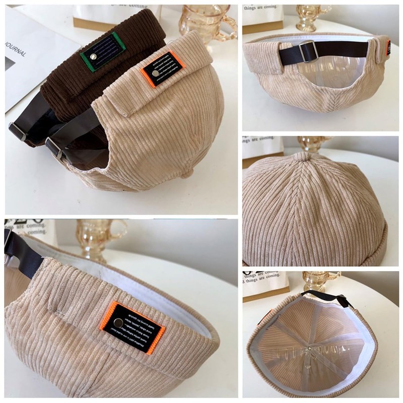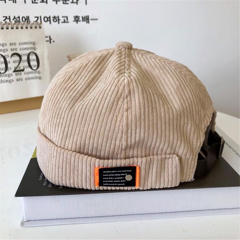 Unisex Docker Cap Hats, Soft Cotton Skullcap Beanie, Brimless Worker Sailor Cap, Adjustable Retro Rolled Cuff (UK, Alpha, One Size, Buckle-Beige)