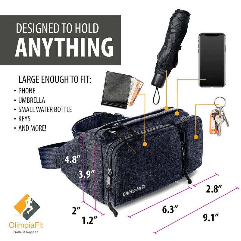 Stay hands-free and organized with the ultra-lightweight OlimpiaFit waist pack! Designed for convenience and security, this sleek fanny pack keeps your essentials within reach while ensuring your valuables stay safe. Whether you're traveling, shopping, exploring theme parks, attending festivals, or working out (running, cycling, hiking), this stylish and functional accessory complements any outfit.
