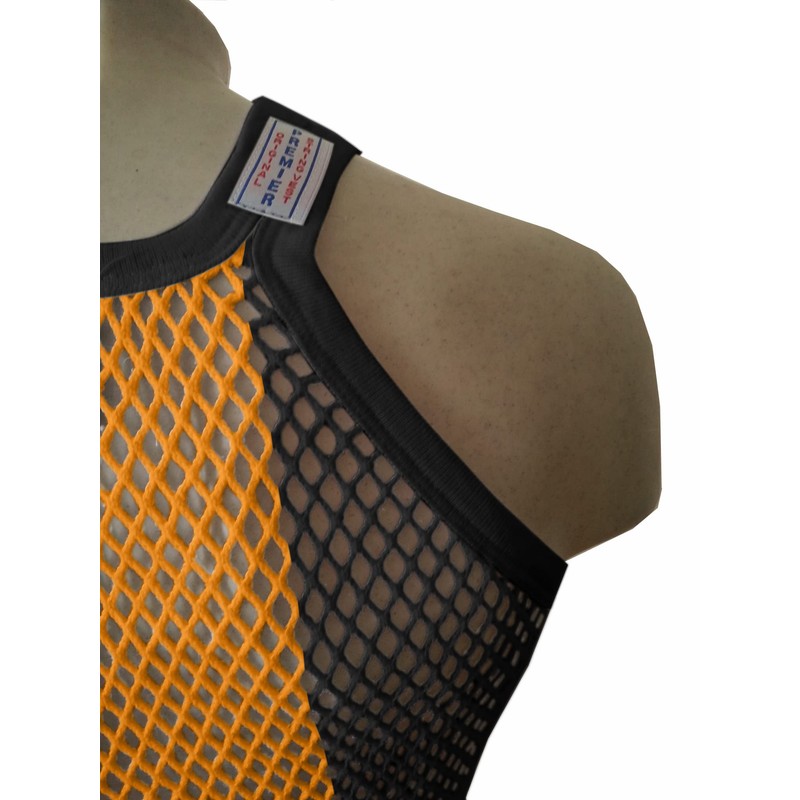 Unisex Jamaica Tank Tops: Fishnet Top in Jamaican Color. Includes Sheer Black Tops for Women, and Mesh Tank Top Men. Perfect for Workouts. Can be Adjusted to Crop Tops for Men or Women. (SV-JAM-XL)
