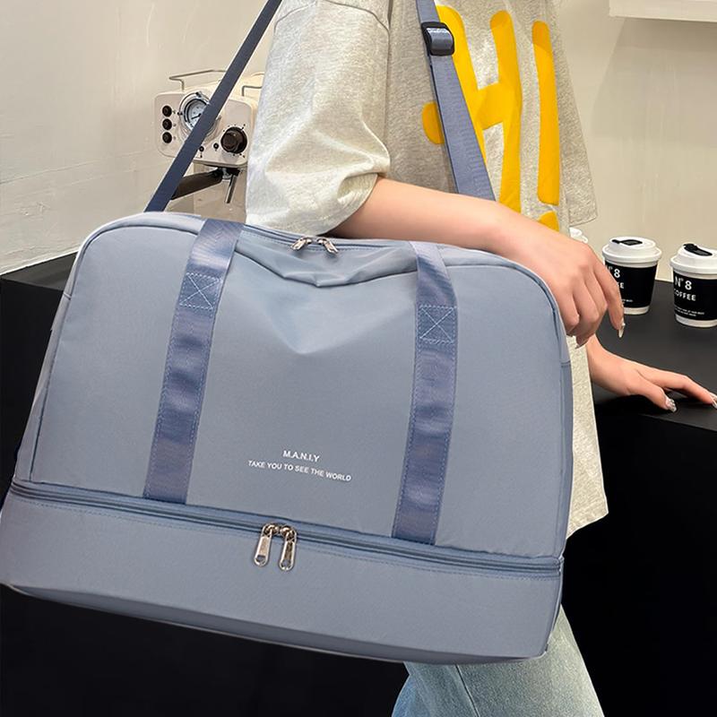 Made of high quality fabric, the duffel bag is durable, waterproof, tear-resistant. You can put your clothes, shoes, toiletries, cell phones, tablets, etc. in this spacious duffel bag. Perfect size for a weekend getaway, a trip to the beach or everyday use. Our duffel bag can be used as a shopping bag, beach bag, gym bag, travel bag, school bag, etc. Perfect for workout, travel, yoga, fishing, hunting, camping, hiking and many other outdoor activities. This duffel bag features a versatile design with multiple compartments and pockets, making it convenient for organizing and categorizing different items.