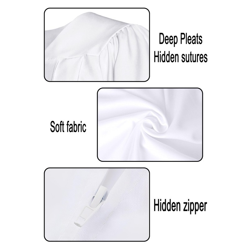 - Design: V-shaped neckline,strong yet invisible zipper,loose cuffs,smooth stitching pleats.The fabric has a nice drape,making the Matte choir robe comfortable to wear.